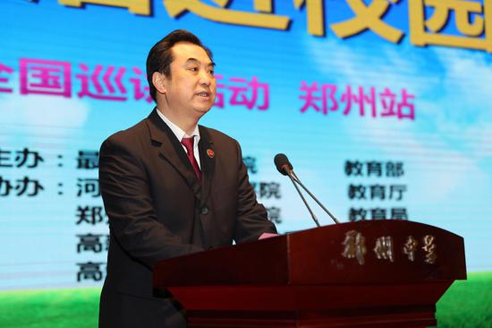 郑州市高新区管委会教育局党工委书记、教育局局长田鸿鹏说,“法治进校园”全国巡讲团的活动对促进校园安全和学生人身安全,具有十分重大和深远的现实意义,他呼吁教育工作者、学生和学生家长,要树立法治观念,一起预防校园暴力,共同维护网络文明。”