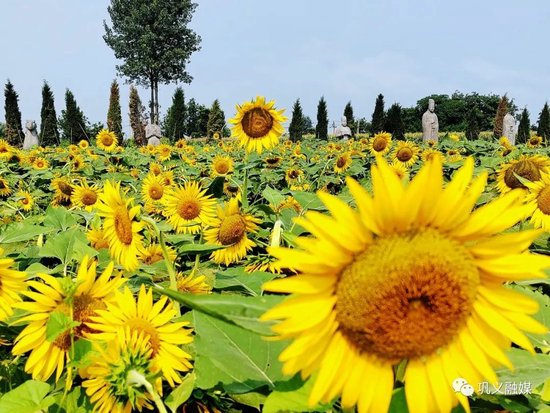 如今,大片的向日葵花开正艳,犹如金色的花海,在阳光的照射下更显绚烂夺目。预计8月底花期将基本结束,市民们不妨趁着周末好天气,携三五好友,到此赏花拍照,来一场与北宋皇陵跨越千年的相遇,留住夏日的美好。
