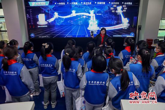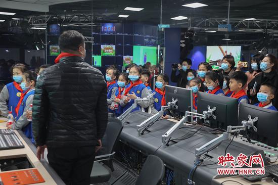 小朋友们第一站来到了大象融媒的一楼新闻发布厅,观看了今年河南春节联欢晚会大放异彩的《唐宫夜宴》节目,在场的工作人员为小朋友们详细介绍了本节目的精髓之处和拍摄技术。