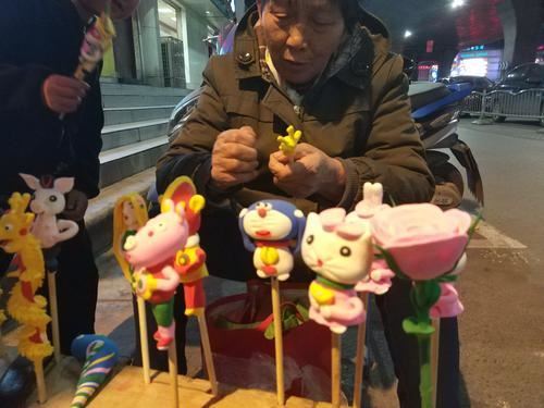 刚开始,子女不让她去出摊儿,怕她受累。但老太太觉得有事做日子才过得踏实。“我每天晚上六点出来,在这捏面人儿卖,从晚上六点捏到十点,生意好的话,能卖二百多。足够我和老伴的吃喝花销,就能省下老伴的退休金了。”