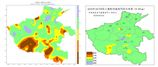 根据当前墒情和未来气候趋势预测,预计到10月8日,全省大部地区墒情以适宜为主,个别地区略偏湿,整体上利于冬小麦整地和播种;但豫西南、豫南局部土壤仍缺墒,需造墒播种。