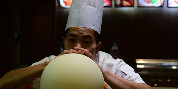 郑大一厨师创吉尼斯记录:吹面成球 可在上面切菜作画
