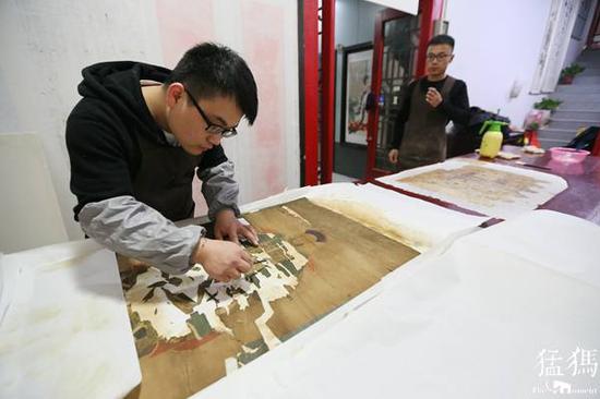 字画装裱起源于战国,距今已有两千多年历史,至明清装裱师成为专门的职业。许多传世书画由于原裱不佳或保管不善,出现受潮发霉、糟朽断裂、虫蛀鼠咬等情况,经过古书画装裱修复师的处理,就能变得完好如初,一代接一代地流传下来。猛犸新闻·东方今报记者 沈翔 摄影报道