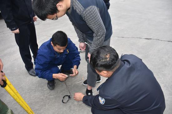许昌犯罪嫌疑人脚铐解不开 警察叔叔求助消防员