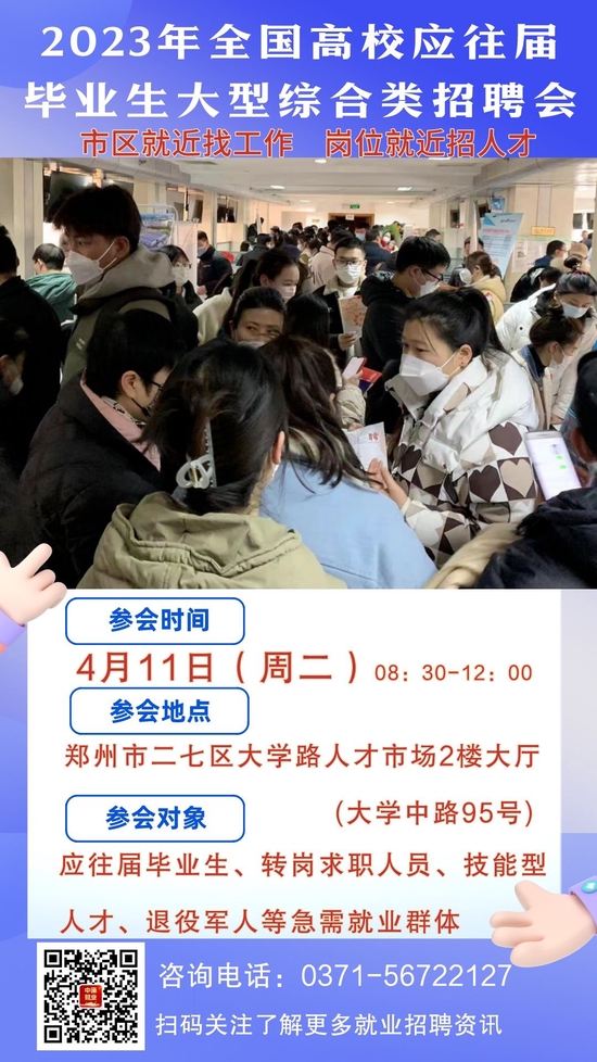 4月18日(周二) 2023年全国大中城市·万众就万岗大型综合类招聘会—郑州站