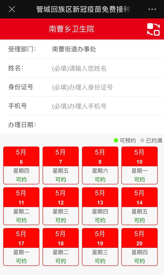 与金水区的预约方式不同,管城区的预约系统,还可直接选择准备接种的具体日期。记者打开的页面显示 ,在南曹乡卫生院,目前从5月6日至20日,均显示可以预约。