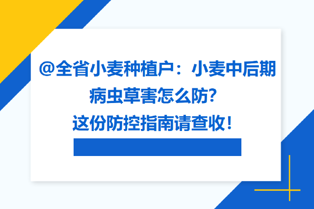 @全省小麦种植户:小麦中后期病虫草害怎么防? 这份防控指南请查收!
