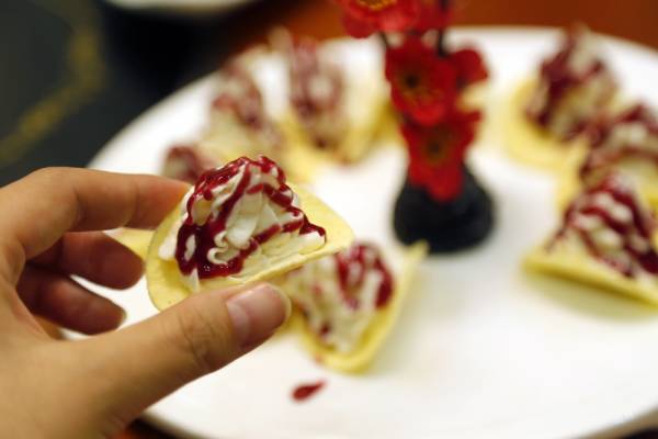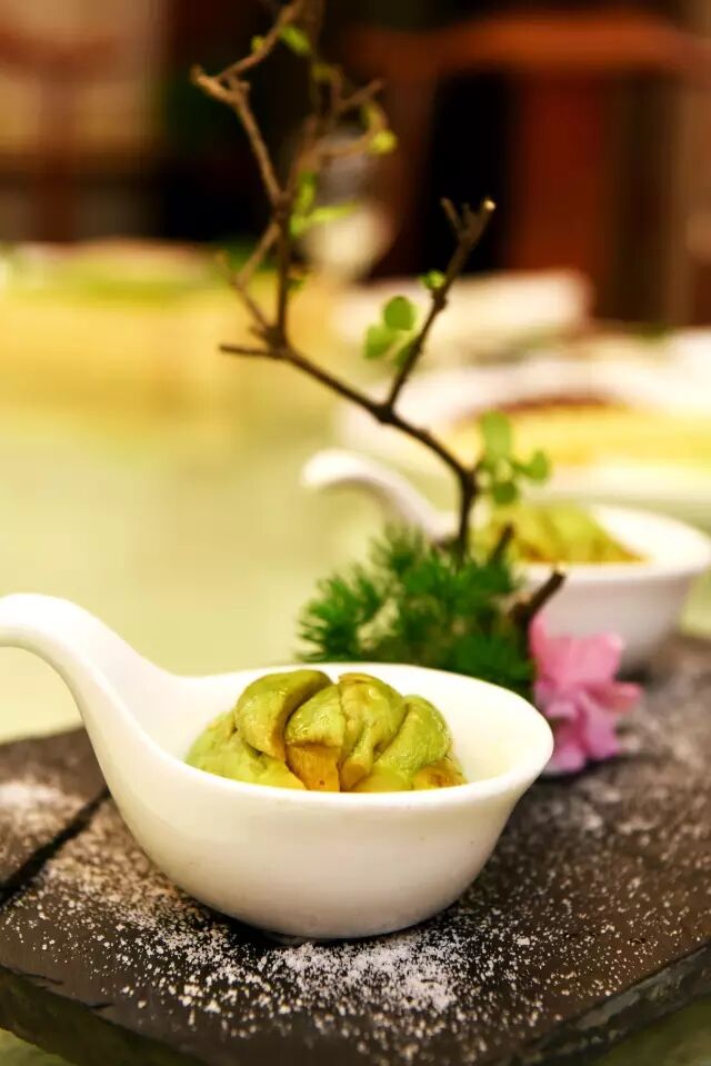 汤非汤的菜肴也是另一路门派。吃肉吃累了,吃块山楂冻解解腻,方便再战斗!蓝莓山药是个挺普通的菜了,但是汤非汤的蓝莓山药却把普通的菜做的不普通。山药泥里加上了酸奶,用薯片做底托。这道菜简直就是可以吸的蓝莓山药,软滑适口,配上薯片的脆,吃起来特别有层次感。值得一提的是店里的自酿酒,猕猴桃酒清甜可口,白酒味道醇厚又有古韵。端起小酒壶,就让人想到“我有一壶酒,足以慰风尘”。红尘中,有友相伴,有酒同醉,真乃人生乐事。