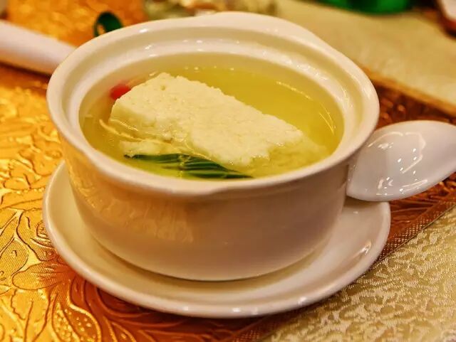 吃惯了重油重盐的味儿,来这里我要主推这款清汤鸡豆花,鸡豆花顾名思义,由鸡胸肉加蛋清,做成豆花儿状,做的过程很繁琐下功夫,需要人时刻在旁边看着。