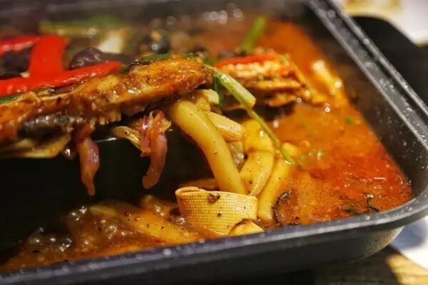 在这里,你可以品尝到多达20种口味的烤鱼!so many口味啊,少见的韩国泡菜味、黑椒耗油味、泰汁水果味等在这里也可以吃得到。听了介绍还是决定点个辣口的黑椒蚝油和不辣的酱香味来试试。这个黑椒蚝油口味的淮王鱼真是美味的一笔啊,热气腾腾的烤鱼,黑椒本身独特的椒香,再融入厚重的耗油味,细细一闻,香气扑鼻,加以青红辣椒点缀,色香味俱全,裂墙推荐啊!吃不了辣的可以试试酱香味,秘制的特调酱料,搭配土豆丁彩椒和肉末,酱香浓郁,不过两者相比,还是黑椒蚝油味道更胜一筹。