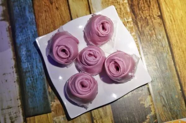 除了热菜烤鱼,你见过还有这么多凉菜的烤鱼店么。。。菜单上设置了十来道凉菜,选择了妹子们最爱的蓝莓土豆泥,在咸香的口味之余来一口甜品,还是很惬意的。红油耳丝是一道开胃菜,当然你也可以下酒,不要贪杯哦。没吃饱的话再来一份紫薯玫瑰包吧,样子也是可爱,咬开是玫瑰馅,紫薯的皮,同样深得妹子喜爱。