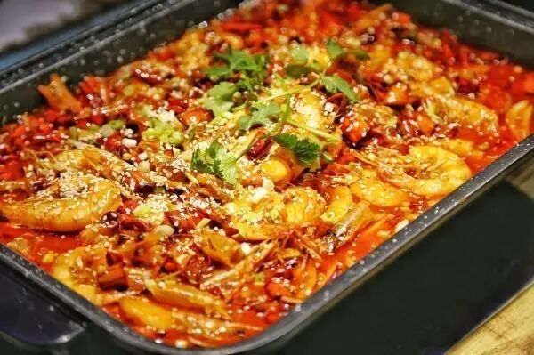 与其他烤鱼不同的是,鱼厂的配菜是烤鱼上桌前垫在鱼下面的,用原汁原味来煮菜,不用加汤破坏原有的味道。40分钟干掉一锅鱼加配菜松松的。除了烤鱼,这里还有几大推荐菜,一个就是红虾飞。香辣口味的红虾飞,满满的一锅大虾,看着很爽的样子,个头也不小,刚开始吃可能味道不够入味,你稍煮片刻,那种香辣味道就开始散发了。还有这个手撕鸡也挺有意思,不是常见的奥尔良口味,而是大厨秘制的,配上了干蘸料,皮脆肉嫩,不开玩笑,你都能一个人干掉一只。