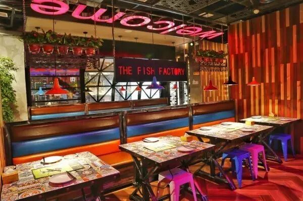 下面介绍一下为啥说这里这么独特,你见过吧烤鱼炉设置在大厅的么?用数吨刚才建造的360环形烤炉,可以达到立体碳烤,在300摄氏度的炉温下,腌制过后的新鲜生鱼进入烤炉,正面烤3分钟,取出翻面再考2分钟,即可浇汁出炉上桌,整个流程的把控严格按照既定标准,保证每桌客人都能在数分钟后吃到香味四溢的烤鱼,出餐效率惊人。无处不在的铁艺、涂鸦、霓虹灯相互辉映,营造出别具一格的硬派工厂风,加上透明的烤炉操作区,标准化的出餐,给人感觉就是进了工厂,很独特的就餐体验,这就是鱼厂,一个神奇的烤鱼店。