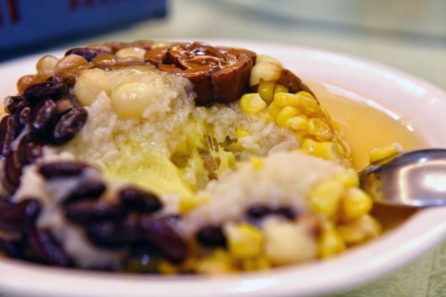 大多数顾客的心头好是这款榴莲八宝饭,小微作为榴莲控看到它端上桌简直眼睛冒光,据说,冲着这碗榴莲八宝饭来的客人不少,你看吃货们总是容易在美味前达成共识······