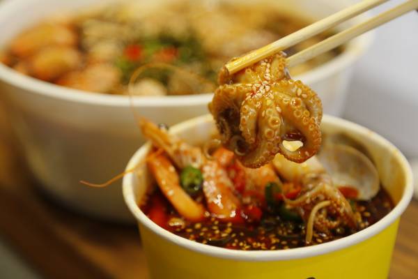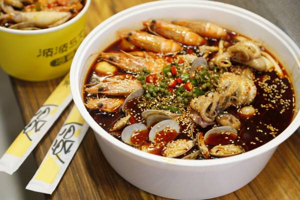串串的食材很丰富,常见的玉米、花菜、面筋,还有毛肚,肥牛、蟹味菇、黄喉、鱿鱼,单人份25元一碗,附赠一份米饭或者面,一个人吃也是超实惠划算,升级版的冷锅串是海鲜锅,满当当的一锅海鲜简直要把人馋死,而且分量真的是无比多,几个人围着一大锅吃,也半天不见见底的。