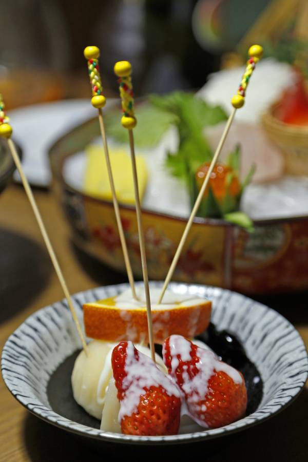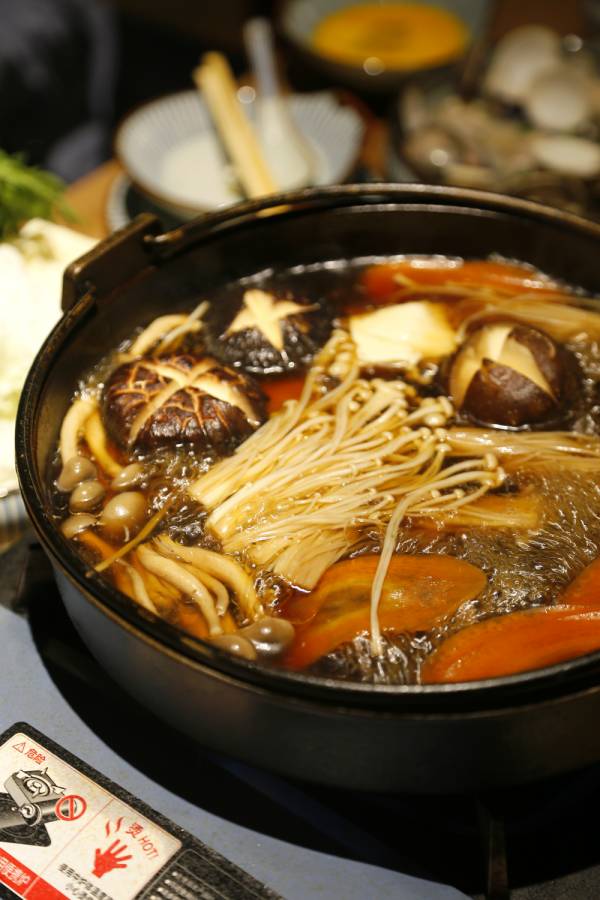 现今日料店都注重材料,刺身新鲜是最基本的,考验后厨功力的,其实在于其他食品,比如寿司、比如烤物,以及每家店特有的吃食。牛肉火锅的汤底调整过,是类似于高汤的浓汤,要知道甜汤底我是真的接受不了,还是清淡但有滋味的更好。火锅配菜非常丰富,肉卷一个个卷好金针菇,还有很好吃的花枝棒,配上菌类和蔬菜,一个锅子吃饱两个人没问题。