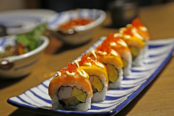 除了传统卷寿司和握寿司,店内的烤寿司是一大亮点,说是寿司,但是跟人们以往对寿司的认知不一样,略有点像精巧版的焗饭,但是味道不同,芝士的味道不会浓郁到骺住我,没有失去日料清淡的本质,味道调整的非常舒服,有微微的甜,配上肥牛又是肉香浓郁,我一个人可以干掉一碟。