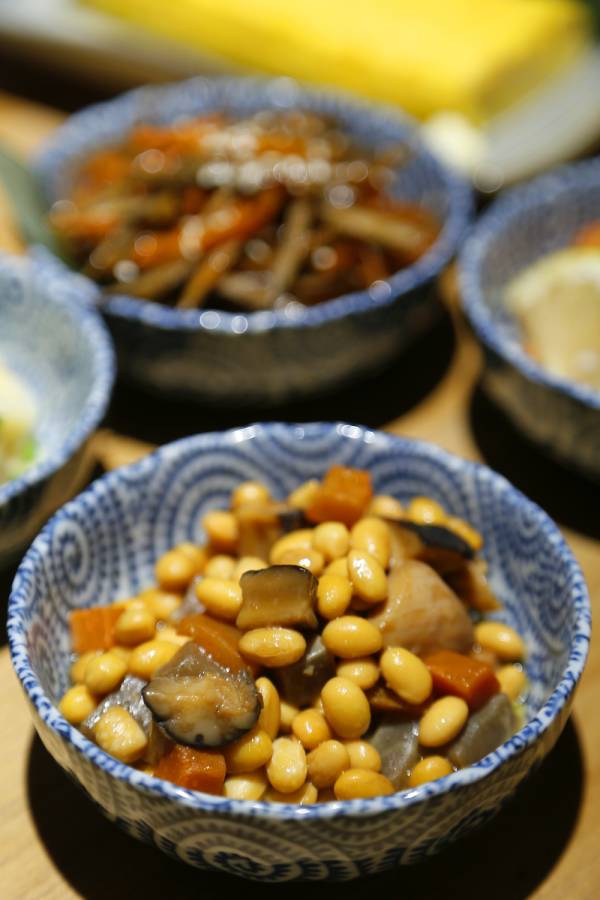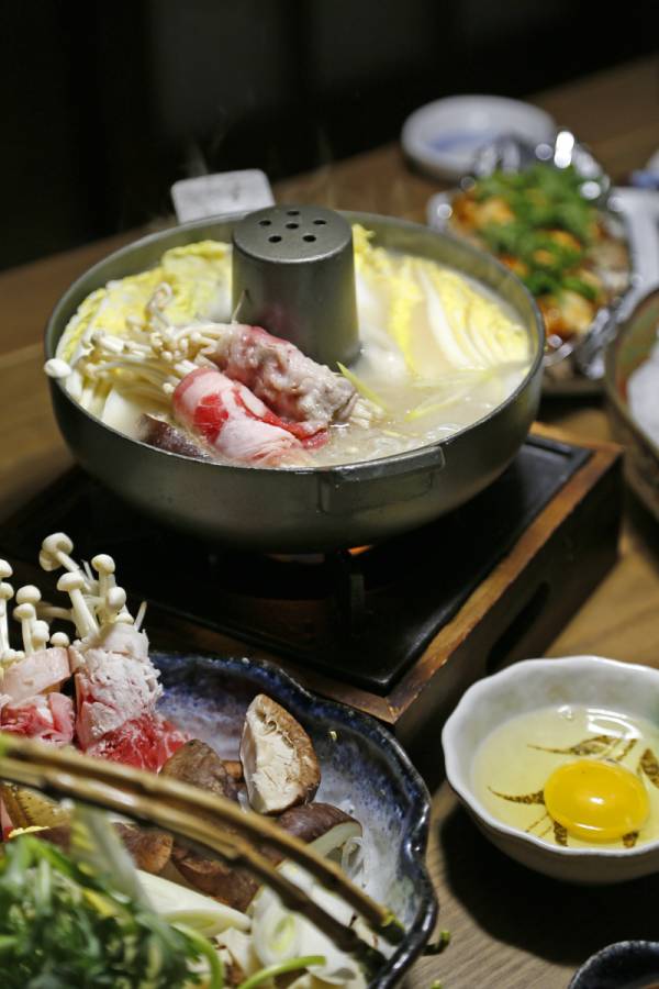餐食遵从“小而精致”的原则,其实种类也不少,有一道筑前煮,用鸡肉浓郁地炖煮后,汤汁用来煨黄豆,黄豆才是主角,浓香四溢十分好味。三文鱼波奇的味道加上调味和芝麻海苔的陪伴,在我尝来也胜过刺身几分。寿喜锅是居酒屋里的“大餐”了,崎霖的寿喜锅用原汁原味的做法,甜肉类可以选用上脑和肉眼,都选用和牛,肉本身是白水煮就会好吃的味道。将肉片在沸腾的锅子中甜酱油的汤汁里涮熟,沾取的蘸料厉害了,是一只生鸡蛋,食客自己打碎沾取食用。不惯寿喜锅吃法的,也可以选用相扑锅,相扑锅是调味好的火锅,也可以选辣味。主食方面有烤饭团和亲子饭,饭团有紫苏、海苔口味,每种口味都以保留米饭本身的香味为主,辅料散发淡淡的香味,增加米饭的口感,很符合日本人清淡饮食的原则。