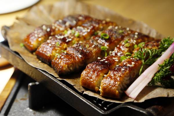 这里的炸豆腐酥皮微黄,豆腐入口即化,就算什么味道也不配也让我很喜欢,而且块大分量给的超足。如果举手投票,估计满桌人投票第一爱的肯定是蒲烧鳗鱼,习惯于贵价地段的鳗鱼分量端上来发愁一人一块都不够,井禾家的鳗鱼大气×N,一大份,每一块都是长长一条,吃完一块再来一块,完全不用担心分赃不均,终于可以把鳗鱼吃开心了。盐烤秋刀鱼也是一大条,闺蜜问我什么感受,我给了俩字儿:大气!更何况配着平价又微甜的清新梅子酒,没想到吃日料也能吃得一口酒一口肉的惬意。