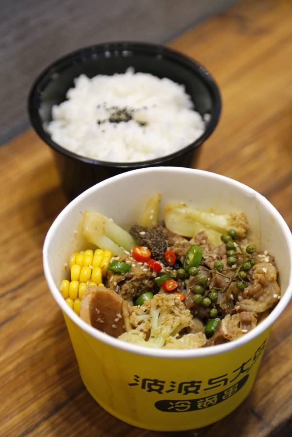 店里主打成都的冷锅串串,冷锅串串并不是字面上理解的是冷的,算是低配版的火锅,是成都民间非常火爆的一款美食。在波波与大鸟,有冷锅串和热锅串两种,在其他地方吃的都是穿成串串来卖,店里的是分成不同的套餐,无需单点食材,没有串成串,而是直接全部在碗里,但是分量数量只多不少,一大盘,满满当当的各种食材,很是夯实。