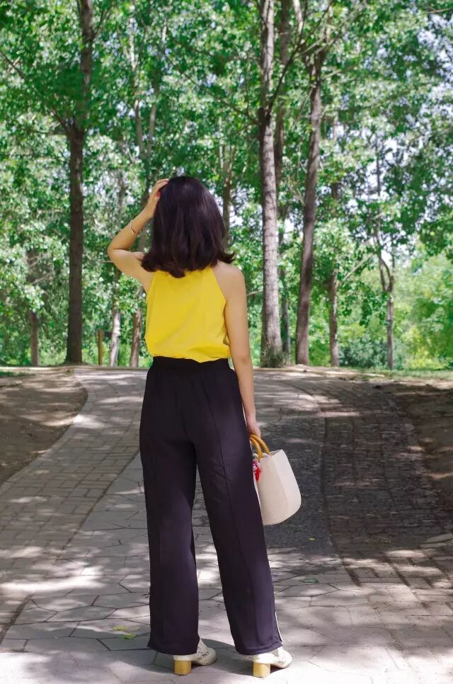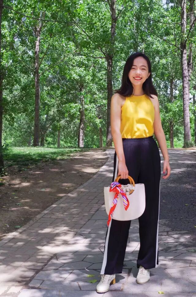 Tips:有拜拜肉的妹子们谨慎选择此类小背心,校服裤是真的很修身!不骗你……