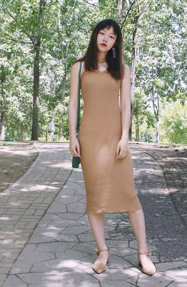 Tips:这款穿搭非常挑剔妹子的身高,个子低的妹子注意不要踩雷。包臀过膝的裙子是很显瘦哒!