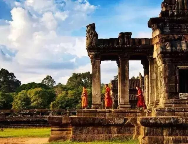 吴哥窟:它是吴哥古迹中保存得最完好的建筑,以建筑宏伟与浮雕细致闻名于世。