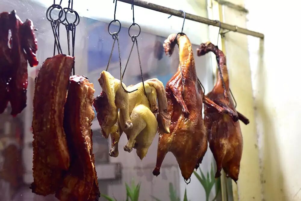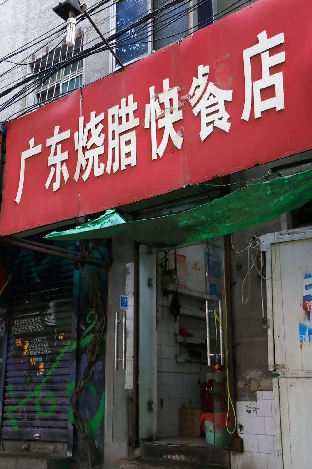 走到了工二街的尽头,就是这家烧腊店,之前听身边的老吃家推荐过,却不知道今天就这么的偶遇了。门头不大有些残缺破旧了,墙上斑驳的油渍都是历史的痕迹。不大的窗口挂着满满一排烧腊,叉烧,脆皮烤肉,白切鸡、烧鹅都是最经典的广式烧腊。红油发亮,香味诱人,赶紧叫老板出来切几块尝尝,叫了几声,老板才懒洋洋的从屋里出来。这么不着急做生意的老板,肯定是味道好任性啊!