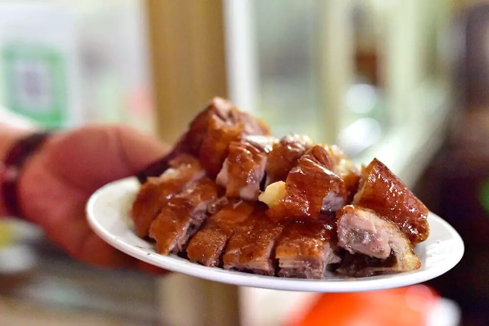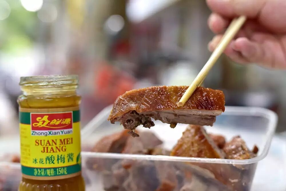趁热吃的烧鹅,皮是脆的绝对不是夸张,肉嫩是绝对的,趁热吃,皮肉骨连而不脱,轻轻一撕皮是皮,肉是肉,啃上骨头都是香的。热的肉蘸上凉凉的酸梅酱,这感觉就是完美!