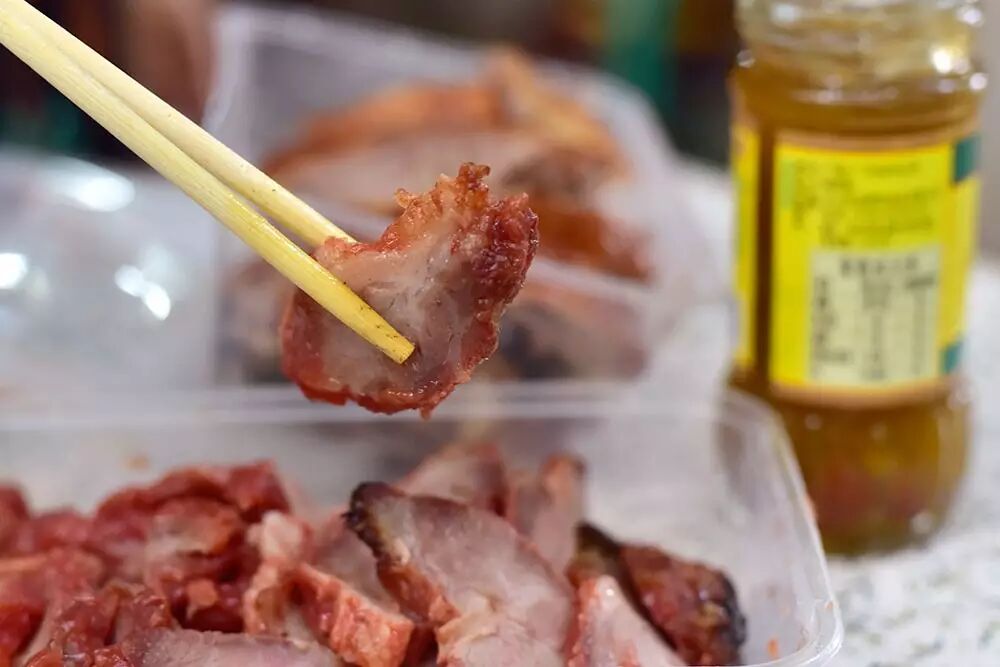 叉烧是蜜汁甜口,入口是酥酥软软的感觉,虽说不是入口即化的感觉,但稍微咀嚼就融化掉了。好的叉烧吃到嘴里的感觉就是绵软可口,虽然是甜的蜜汁,但并没有甜腻的感觉,回味是很醇厚的,不会感觉油糊嘴巴。