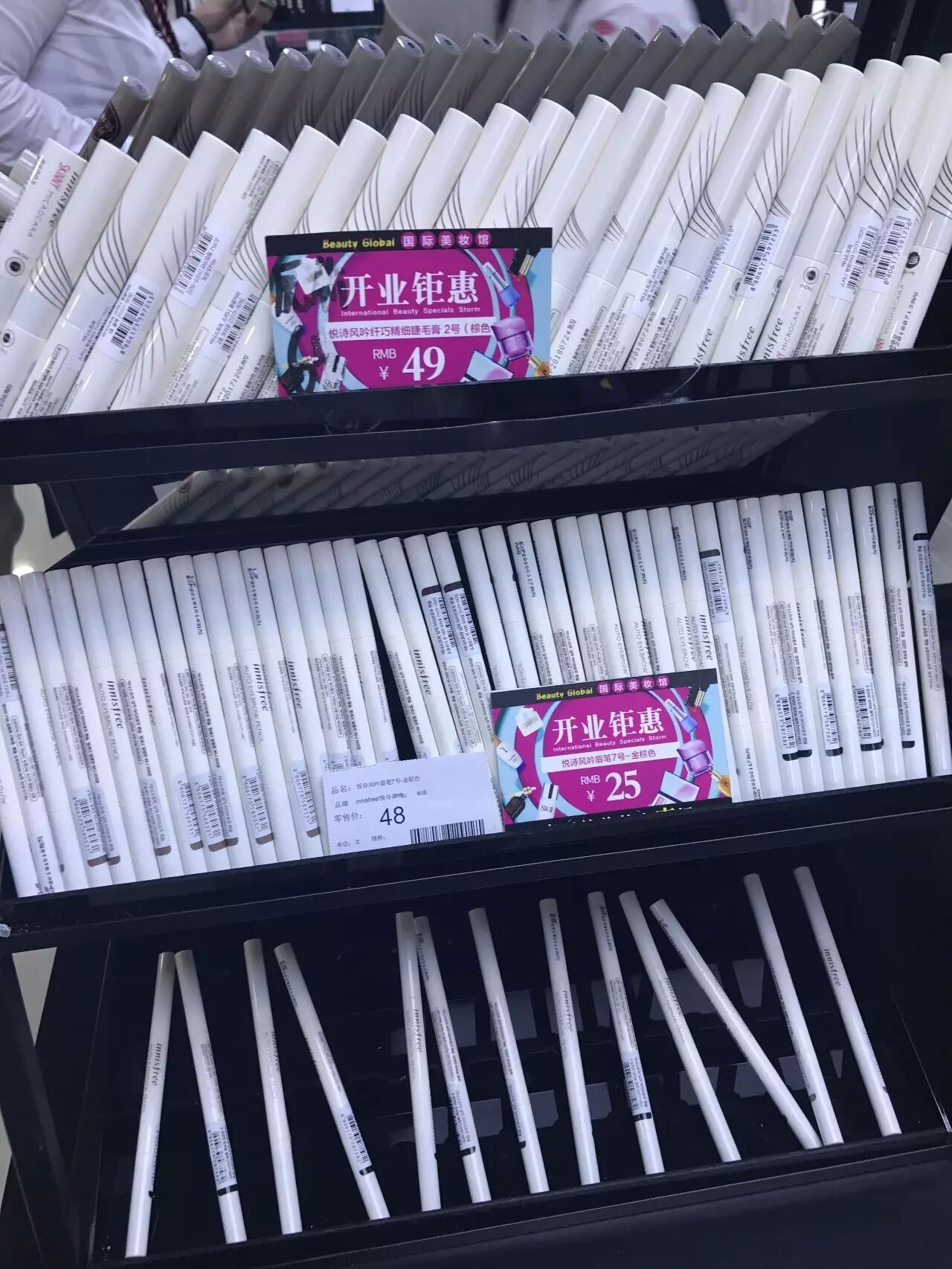 由于开业当天所以所有的品牌都有开业活动,对于国际美妆区来说,在价格上比较有优势的是面膜。所以面膜还是有囤一囤的必要的。几乎所有的面膜都是买两盒送一盒,所以卖的很快秒光趋势很明显,关于价格大部分面膜也不足100元所以真的很划算。囤货的宝宝走一波。其余活动大概是这样。