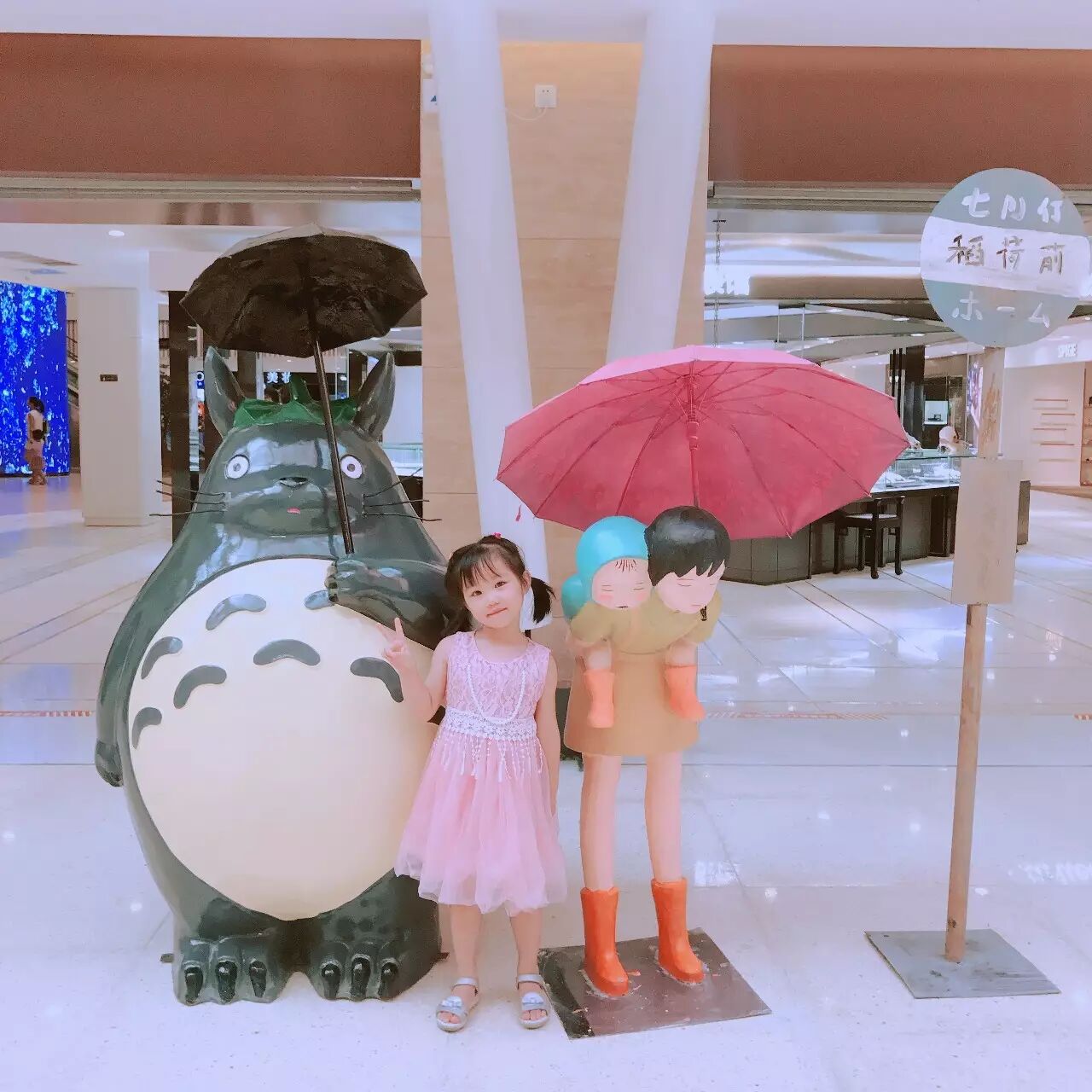 商场刚开业,同步出现的还有一场日式“夏日祭”庙会和宫崎骏作品展!当年看过的千与千寻、龙猫...满满的全是回忆啊!一楼进门的过道上会有一些宫崎骏漫画作品的真实雕像,有龙猫有无脸男等...可以自由合影。满满日式风格的小摊位售卖一些细碎的小商品和绿植,看得出这场“夏日祭”庙会布置的也是相当用心了,抬头挂满了日式风格的纸风筝~