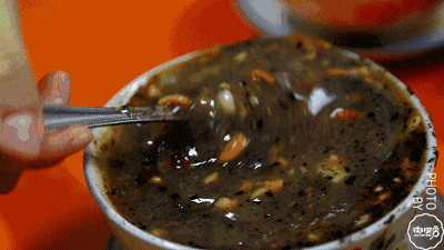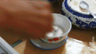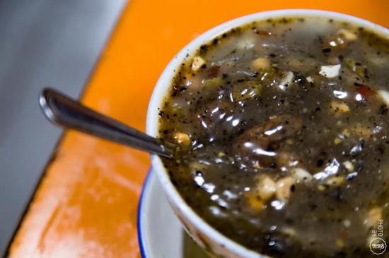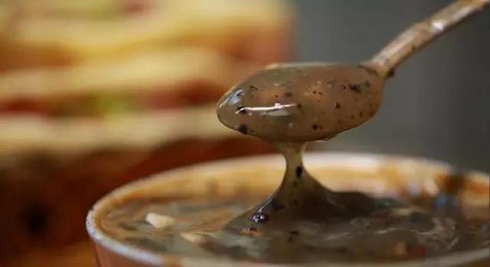 最后浇上红糖和玫瑰酱调成的玫瑰水,