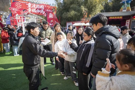 趣味互动游戏同样人气爆棚,投福纳福、口令接龙、蒙眼搬水果、蒙眼原地踏步等项目前排起长队,大人孩童齐参与,在欢声笑语中解锁新春好彩头。