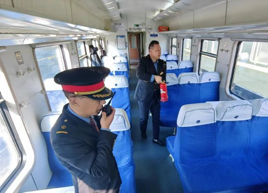 列车针对客流超员,列车始发和途中利用长大区间开展列车危险品查堵,列车长组织大家认真学习“危险品”六字查堵法,确保危险品查堵不留死角,将危险品堵在车下,保证旅客和列车安全。(刘丹丹、杨洪军)