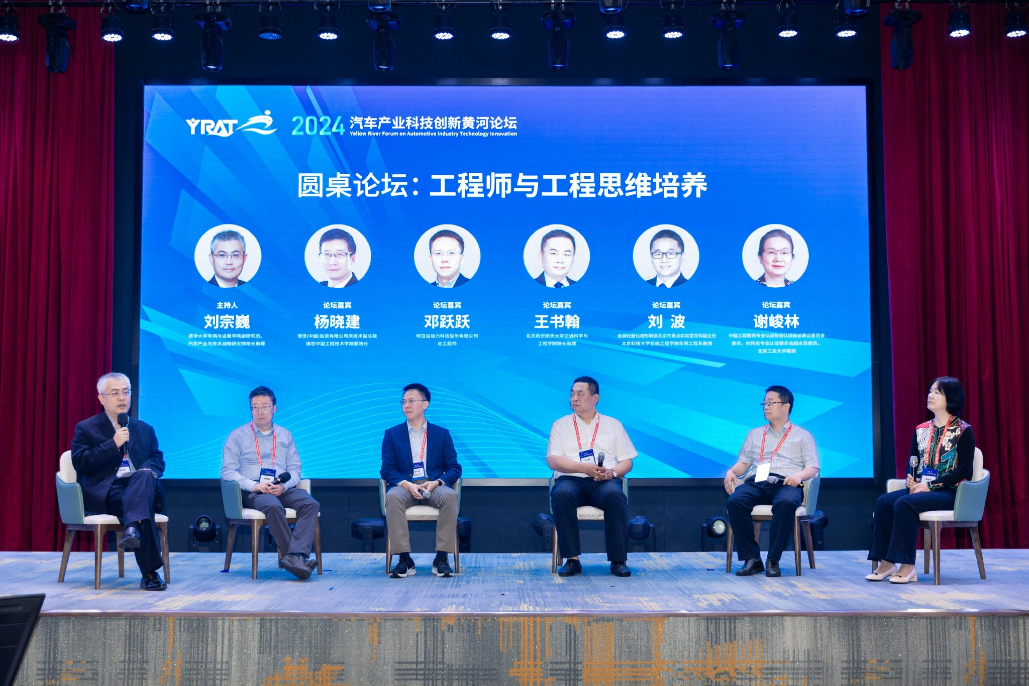 “工程师与工程思维培养”圆桌论坛环节,清华大学车辆与运载学院副研究员、汽车产业与技术战略研究院院长助理刘宗巍,博世中国投资有限公司原技术副总裁、博世中国工程技术学院原院长杨晓健,特百佳动力科技股份有限公司总工程师邓跃跃,北京航空航天大学交通科学与工程学院院长助理王书翰,金属轻量化成形制造北京市重点实验室常务副主任、北京科技大学机械工程学院车辆工程系教授刘波,中国工程教育专业认证协会认证结论审议委员会委员、材料类专业认证委员会副主任委员、北京工业大学教授谢峻林等六名专家,围绕工程师应具备工程思维的重要内涵、工程思维培养提升和沉淀进行了交流,并从实际出发,对学校、企业供需两端对工程思维培养的模式和方法进行了深入的探讨和交流。