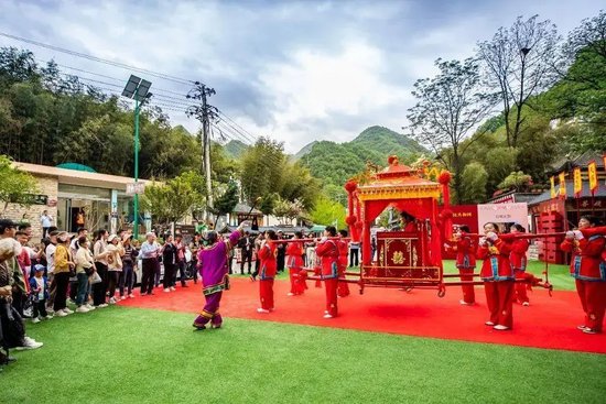 节日期间,景区精心筹备的非遗文化盛宴轮番登场:天桥杂技、民俗绝活,令人眼花缭乱。推荐观演路线:景区入口➡中心区非遗广场➡金鸡河景区➡滴翠河景区➡农耕村。