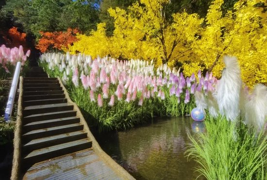 西区滴翠河景区水帘仙宫瀑布处,新打造的百米芦苇荡堪称最大亮点!银白芦花在碧水畔摇曳生姿,银杏树走廊拾阶而上,沉浸式感受秋日的诗意。