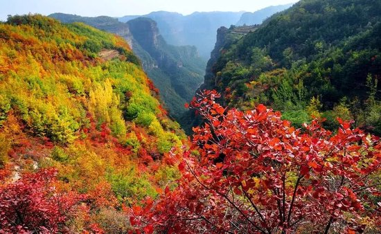 倘若你有时间,一定不能错过太行大峡谷这一场秋日的盛宴。太行大峡谷的秋,将夏日苍翠欲滴的山林,沾染出了漫山遍野,色彩斑斓的美景。