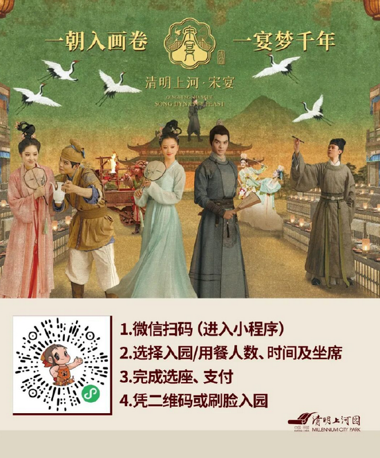 一朝入画卷,一宴梦千年。清明上河园将围绕宋文化继续创新,深入挖掘,带来更多令人耳目一新的旅游产品。《清明上河·宋宴》期待与您执笔入画,再续风雅!品人间至味,悟大宋清欢。查看下图,预约入宴!赴一场风雅与市井的千年之约。
