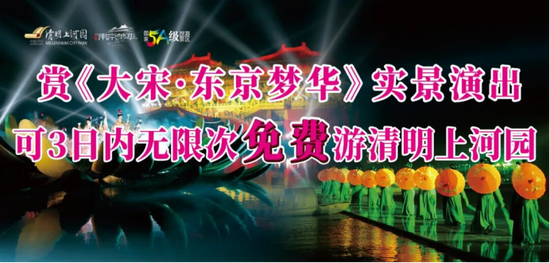 购买《大宋·东京梦华》实景演出票,可3日免费无限次游览清明上河园。现实景演出票所有区域双人票均仅需399元。