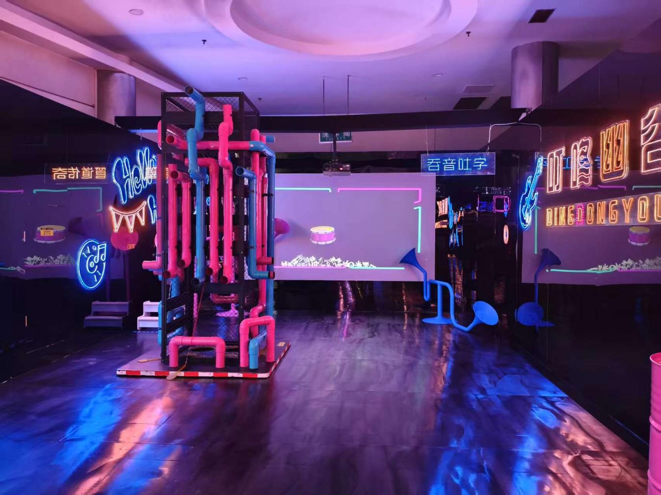 这里以“科技赛博感”为基调,通过高对比度的霓虹光影与几何线条,构建出充满未来感的声学世界。你可以敲击管道,探究声音的产生;静听一段纯音,感受声音如何牵动情绪;观看特斯拉线圈上随音乐舞动的电弧,直观体会电磁与声学融合的奇妙。