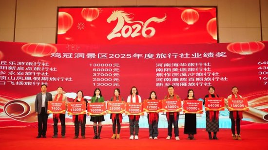河南省鸡冠洞旅游发展有限公司推介官进行2026新春推介。她介绍,鸡冠洞作为国家5A级景区,以独特喀斯特岩溶地貌闻名。2026年,景区将升级洞内灯光效果,打造沉浸式游览场景,推出“溶洞探秘+科普研学”“溶洞奇观+夜间游览”等特色产品,并优化配套服务,提升游客体验。