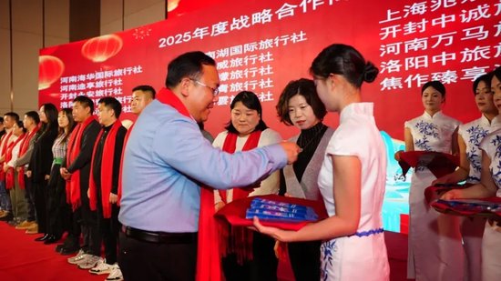 颁奖现场,嘉宾与获奖代表握手、合影,掌声经久不息。南阳美途旅行社副总经理王尚礼作为合作商代表发言,他表示,这份荣誉既是肯定也是责任,未来将继续加大对两景区的推广力度,设计更多优质旅游线路,与景区携手实现更高质量的共赢。