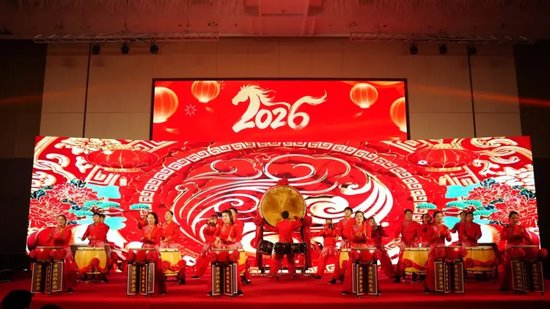 答谢会在重渡沟非遗鼓乐团带来的《普天同庆》中拉开帷幕。鼓点铿锵有力,节奏明快激昂,重渡沟鼓乐的独特魅力与喜庆祥和的氛围完美融合,既展现了重渡沟深厚的文化底蕴,也为这场行业盛宴奠定了热烈欢快的基调,赢得现场嘉宾阵阵掌声。