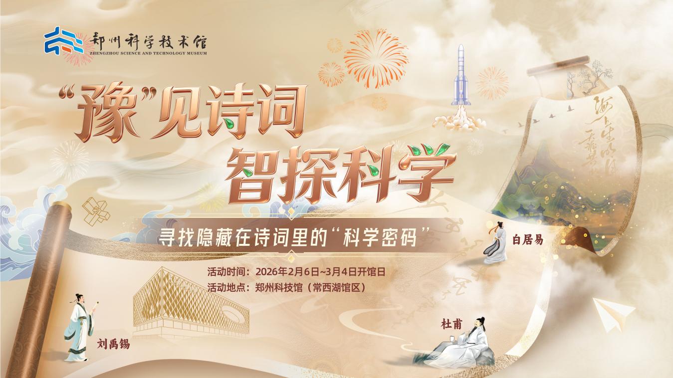 这个寒假,告别死记硬背!郑州科技馆重磅推出“科技+古诗词”主题系列活动,带您打破时空界限,在硬核科技中重读唐诗宋词,在诗词意境里解锁科学密码!从一层到五层,层层有惊喜,等你来打卡!