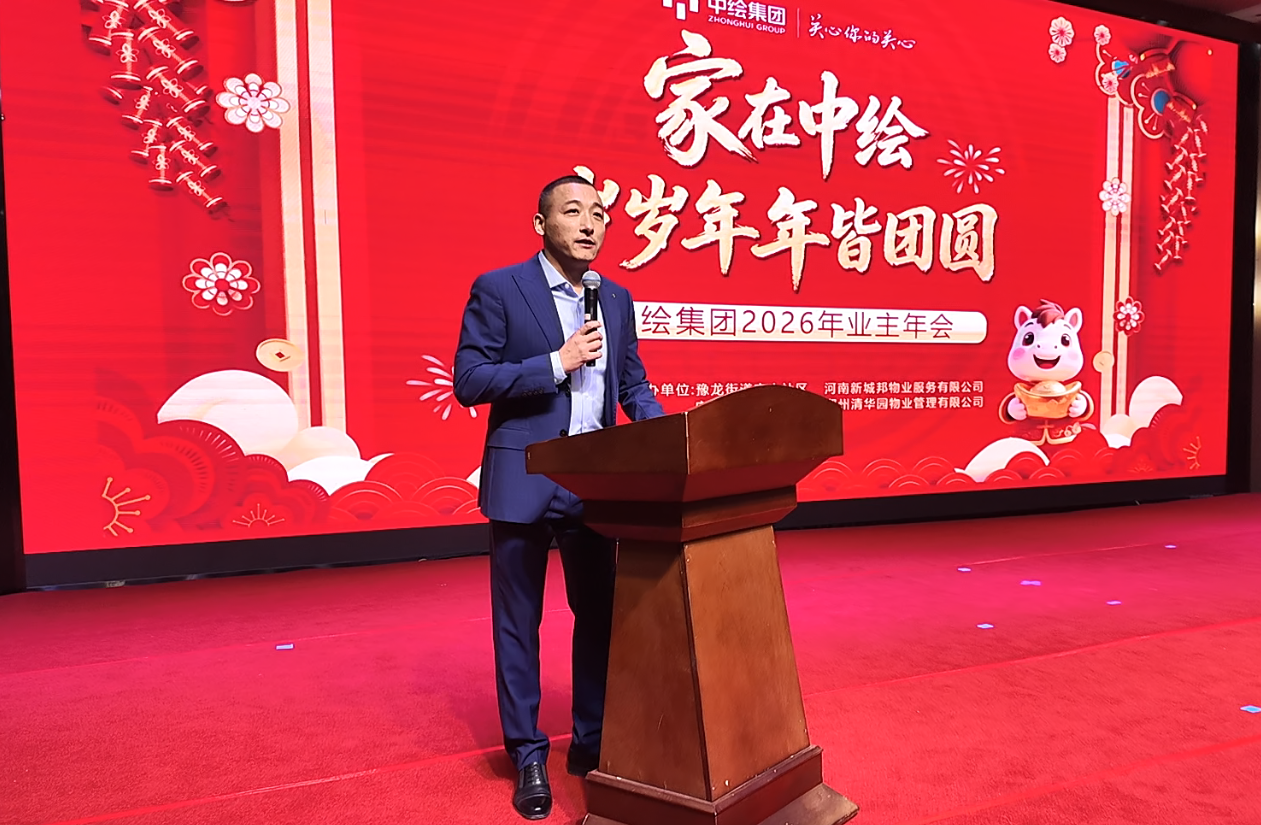 岁末迎春暖,邻里聚情长。为编织邻里情谊纽带、传递新春美好祝福,中绘集团2026年业主年会如约启幕,一场满载年味与温情的盛会,将中绘·忆江南旅游度假区、中绘·大溪地、中绘·SOHO广场等各项目的业主们紧紧相连。豫龙街道宁山社区书记周慧锋、广武镇忆江南社区书记王磊、中绘集团副总经理黄艳红、河南新城邦物业服务有限公司总经理徐巍、郑州清华园物业管理有限公司总经理刘备备等嘉宾倾情出席,与业主们共赴这场专属“家人”的团圆之约。