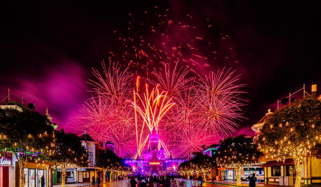 夜幕降临,“盛世华章城堡烟花秀”登场,绚丽烟花在城堡上空绽放,与园区灯光交相辉映,打造出火树银花不夜天的浪漫盛景,为游客留下专属新春记忆。此外,园区还设置了丰富的新春互动环节,其中“拍马屁领红包”趣味十足,更有各类互动游戏精彩不断。游客们参与挑战赢取“欢乐钞”,兑换新春好礼,在玩乐中收获满满福气。