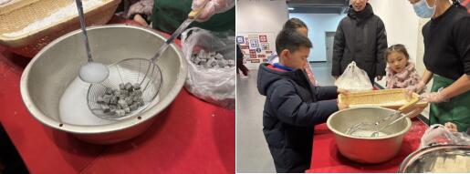 体验开始后,孩子们个个兴致勃勃、跃跃欲试。在家长的陪伴与协助下,小手拿起馅料,在滚动的筛盘中均匀裹上层层糯米粉,一圈、两圈、三圈……小小的元宵在筛盘中慢慢变得圆润饱满。从笨拙尝试到熟练掌握,孩子们脸上挂满认真与喜悦,每一次翻滚都充满成就感,每一颗元宵都承载着团圆的美好寓意。现场欢声笑语不断,家长与孩子默契配合、亲密互动,在共同制作中增进情感,在传统体验中传承优良家风。