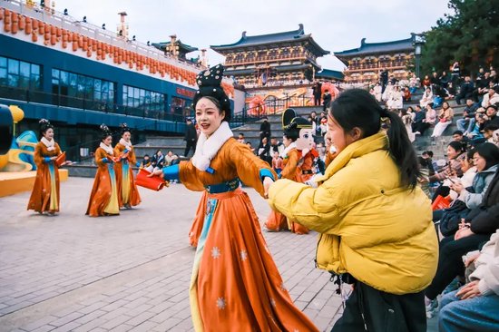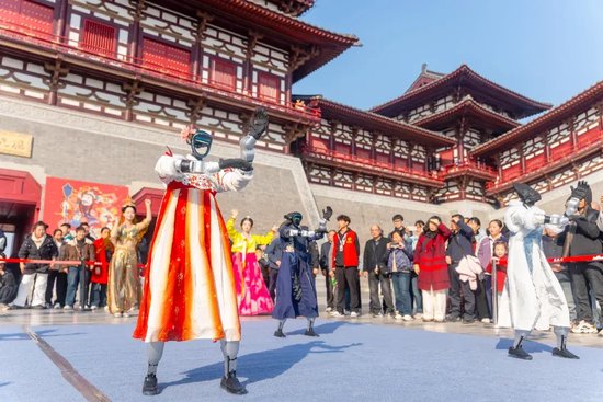 兼顾传统与现代,融合经典与创新,隋唐洛阳城开启多元互动闹春模式,让春节的热闹氛围持续升温。大年初二,央视春晚同款机器人惊艳亮相景区,身着汉服与演员默契共舞,科技与文化同频共振,为现场游客带来一场别开生面的文旅盛宴。不仅如此,景区还精心推出专属纪念币“神宫宝券”、神都生日礼遇等互动体验内容,将游园赏景、互动体验、传统年俗与限定福利紧密串联,聚焦游客情绪价值与体验需求,解锁传统文化的全新打开方式,让每一位游客都能闹得尽兴、玩得开心。